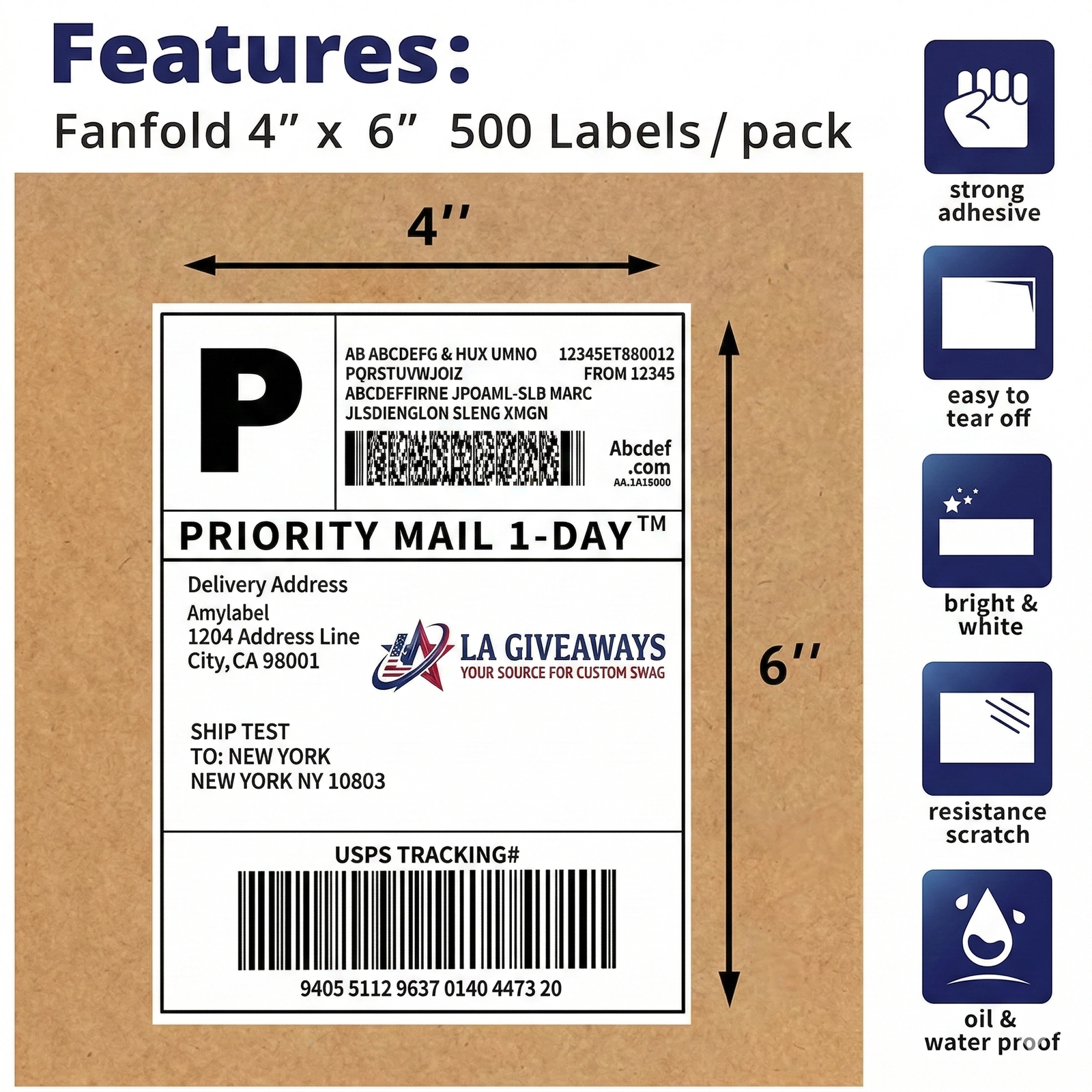 4″ x 6″ Fanfold Direct Thermal Shipping Labels