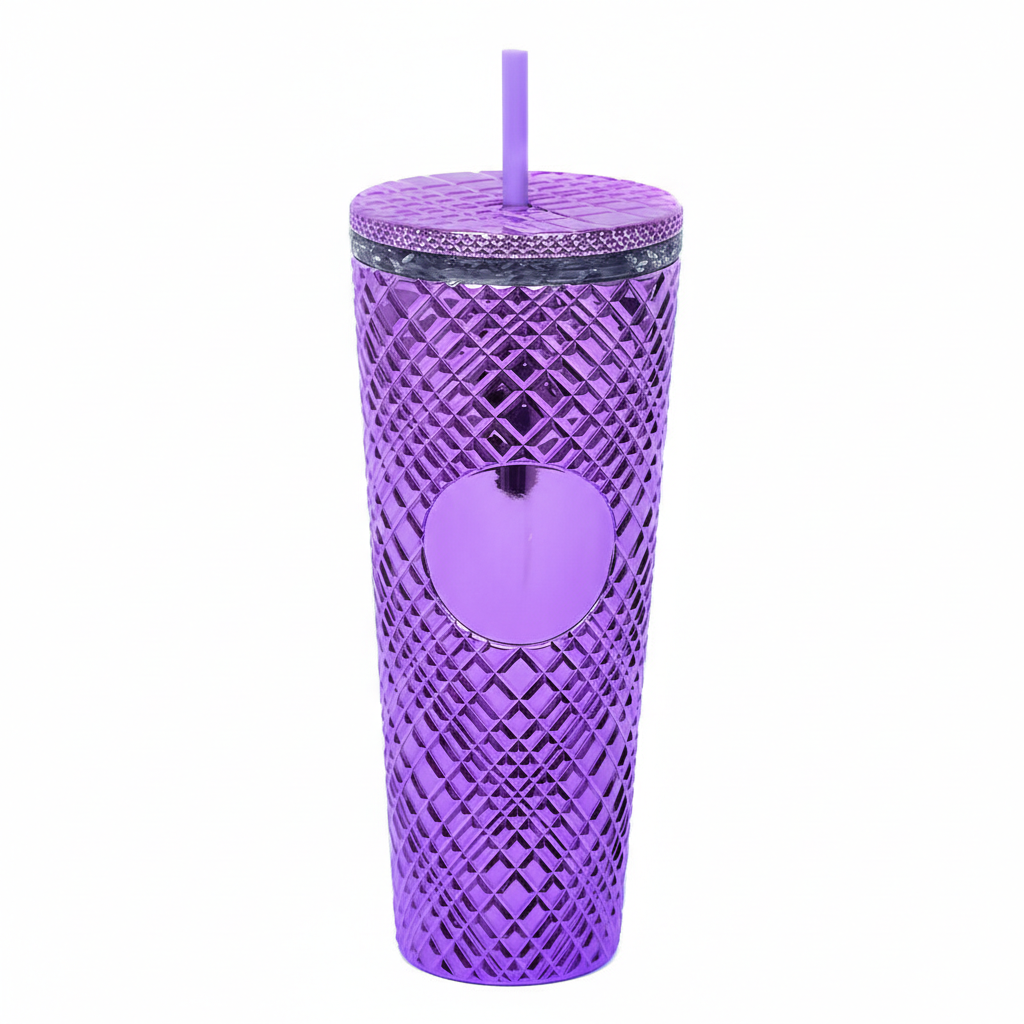The Double Wall Plastic Studded Tumblr Cup with Straw and Lid is a premium beverage container designed for durability and style. Crafted from high-quality, BPA-free plastic, its double-wall construction ensures excellent insulation, keeping drinks cold for hours while preventing condensation on the exterior. The studded texture provides a secure grip and a trendy, modern look, making it perfect for everyday use at home, in the office, or on the go. The included straw and lid enhance convenience, allowing for easy sipping and spill-proof portability. Ideal for water, smoothies, or iced coffee, this cup is a versatile accessory that combines functionality with fashion, suitable for various occasions from casual outings to festive gatherings.