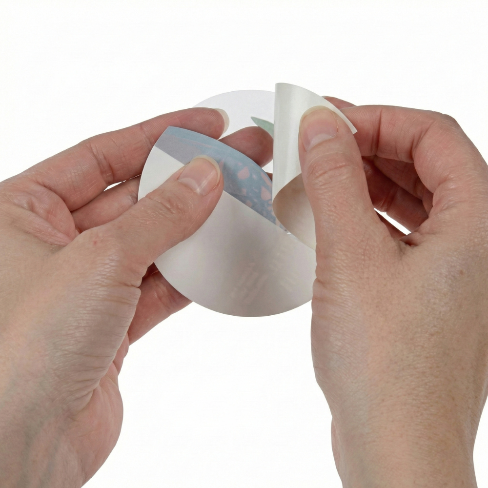 Full-color 3″ circle vinyl sticker with removable or permanent adhesive, perfect for promotions, labeling, and brand visibility.