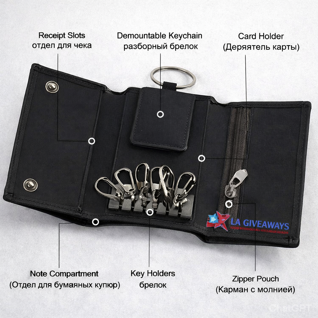 Leather men’s wallet with coin purse and key holder, customizable with logo, perfect for daily use and premium promotional gifting.