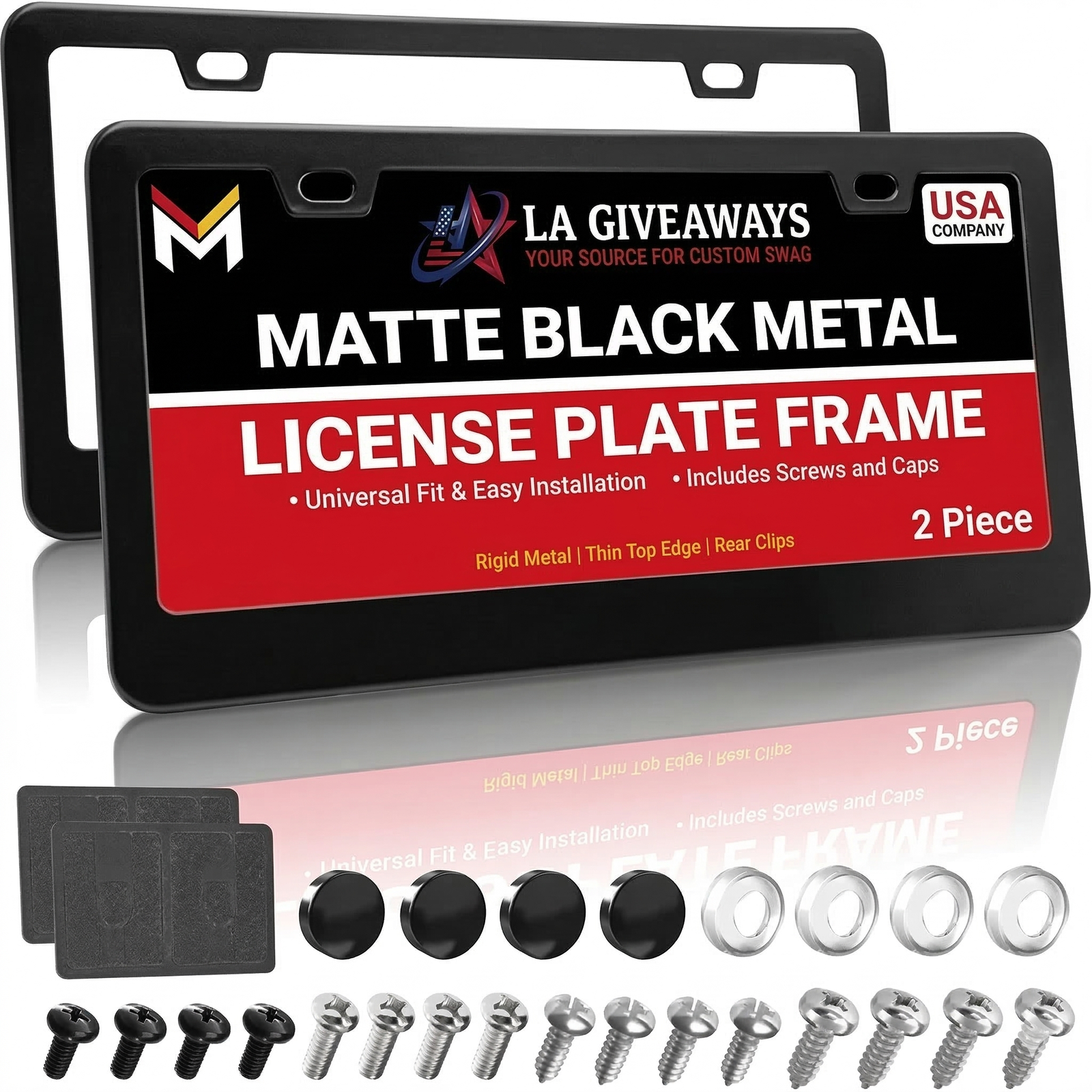 These premium matte black stainless steel license plate frames provide a sleek, durable solution for vehicle protection and style. Rust-resistant and rattle-free, the slim-top design ensures registration tags remain fully visible. Each set includes two frames, stainless steel screws, and black screw caps for easy installation. Compatible with most U.S. and Canada license plates, these frames are ideal for cars, trucks, and SUVs, delivering both protection and a modern aesthetic. Perfect for men and women who value high-quality automotive accessories.