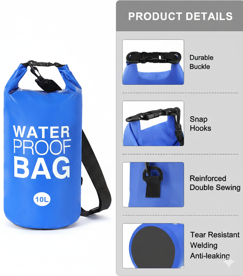 The PVC Roll Top Dry Bag is an essential waterproof storage solution designed to protect your valuable items from moisture, dust, and harsh environmental conditions. Available in a versatile range of sizes from 2L to 40L, this bag is perfect for a wide array of activities, including hiking, camping, kayaking, and beach outings. Its durable PVC construction ensures long-lasting performance, while the roll-top closure mechanism provides a secure seal that keeps water out effectively. Whether you’re storing electronics, clothing, or food supplies, this dry bag offers reliable protection and easy portability with its lightweight design and adjustable straps. Ideal for both casual adventurers and professional outdoor enthusiasts, it enhances safety and convenience during any excursion.