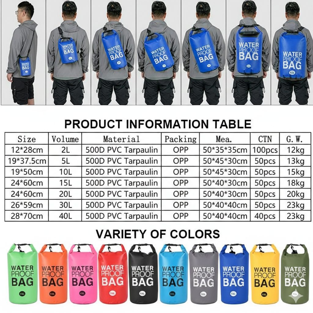 PVC Roll Top Dry Bag 2L to 40L Waterproof