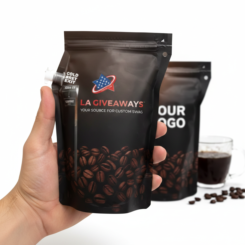 Custom logo coffee maker spout pouch for hot or cold brew, easy to use, portable, leak-proof, perfect as a promotional business