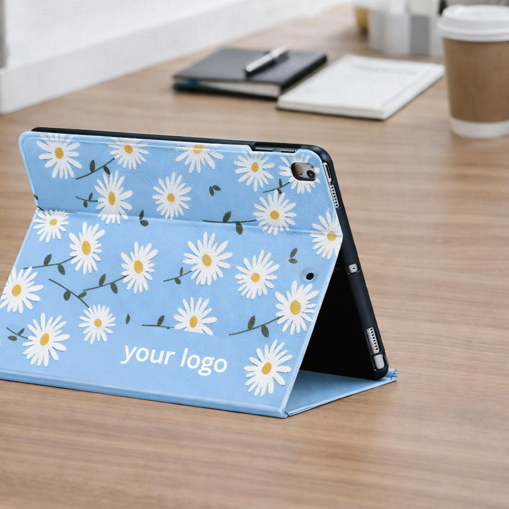 The Tri-Fold Protective Case for iPad 12.9 Inch is designed to provide reliable protection and professional style. Made from high-quality PU leather with a shockproof TPU or PC back shell, it safeguards your device from drops, scratches, and daily wear. The tri-fold front cover supports multiple viewing and typing angles, making it perfect for work, study, and entertainment. The built-in pen holder securely stores your Apple Pencil, preventing loss and ensuring convenience. Lightweight yet durable, this case offers precise cutouts for easy access to all ports and buttons. Ideal for corporate gifts, retail sales, and promotional branding, it can be customized with your company logo using silk screen, UV printing, hot stamping, embossing, or debossing to create a premium branded product.